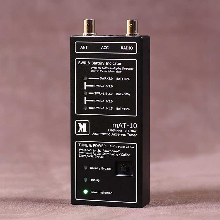 In qualità di produttore professionale, vorremmo fornirti il sintonizzatore automatico per antenna Pengfa mAT-10 QRP. E ti offriremo il miglior servizio post-vendita e consegne puntuali. Il mAT-10 è un sintonizzatore compatto e raffinato progettato per YAESU FT-817/818, può essere utilizzato anche in altri ricetrasmettitori QRP. Quando è collegato a FT-817/818 tramite un cavo di controllo dedicato mAT-CY, è un sintonizzatore dedicato, che può ottenere una comoda "sintonizzazione a un tasto". Se non viene utilizzato alcun cavo di controllo, è un sintonizzatore QRP universale per tutti i ricetrasmettitori a bassa potenza.